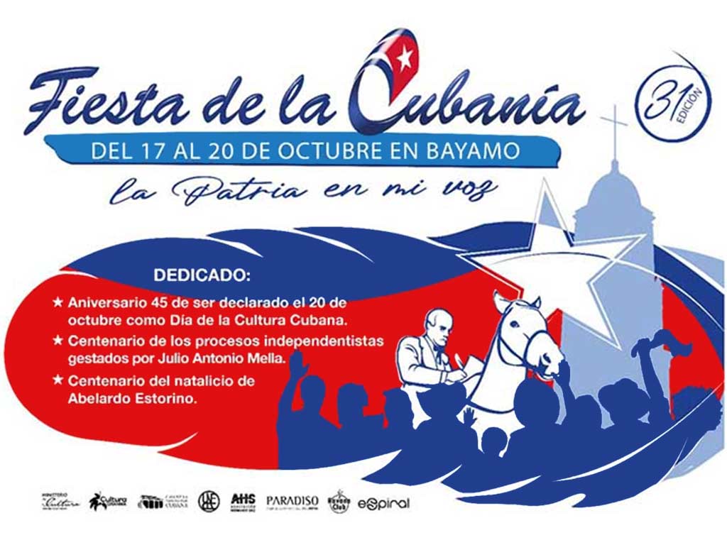 La Fiesta de la Cubanía tendrá lugar en Bayamo, provincia Granma, del 17 al 20 de octubre, pero desde el 10 del presente comenzarán las actividades por la Jornada por la Cultura, día en que desde horas bien tempranas sonarán las campanas del antiguo ingenio «La Demajagua», lugar simbólico de la historia de la isla.