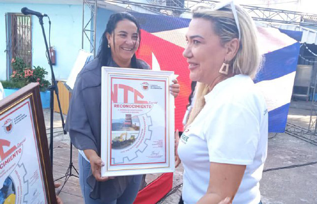 Yudelkis Ortiz Barceló, primera secretaria del Comité Provincial del Partido Comunista de Cuba en Granma, y Yanetsy Terry Gutiérrez, gobernadora, entregaron a las empresas locales de Construcción y Montaje y de Servicios de Ingeniería y Diseño la Distinción Colectivo Destacado Nacional, conferida por el Secretariado del Sindicato Nacional de Trabajadores de la Construcción.