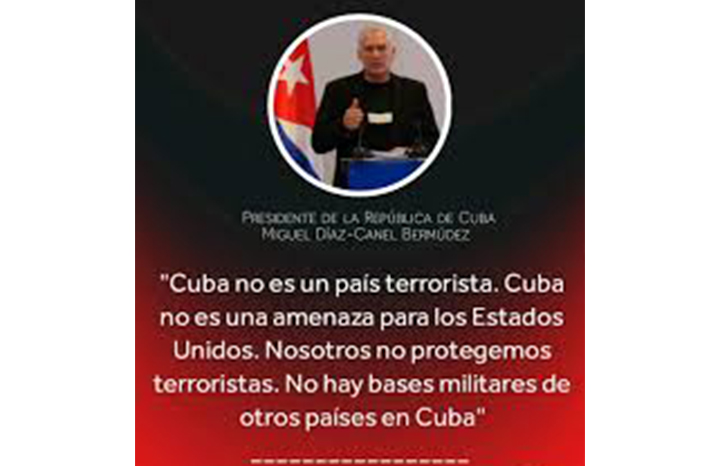 ¿Cómo puede hablar de terrorismo en Cuba, un país que ha sido víctima del terrorismo por parte de ese que nos está acusando? Es una desfachatez, es una inmoralidad, es una manipulación, es una mentira, es una calumnia; pero nosotros tenemos hechos muy recientes, y con qué deshonestidad los gobiernos de Estados Unidos han movido la temática del terrorismo culpando a Cuba.