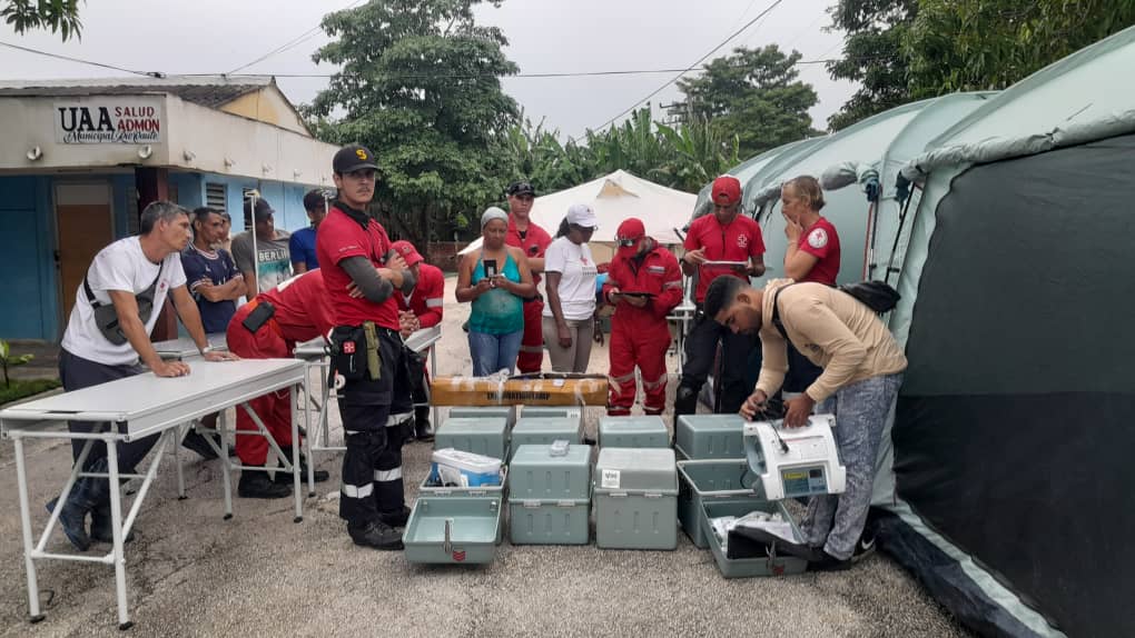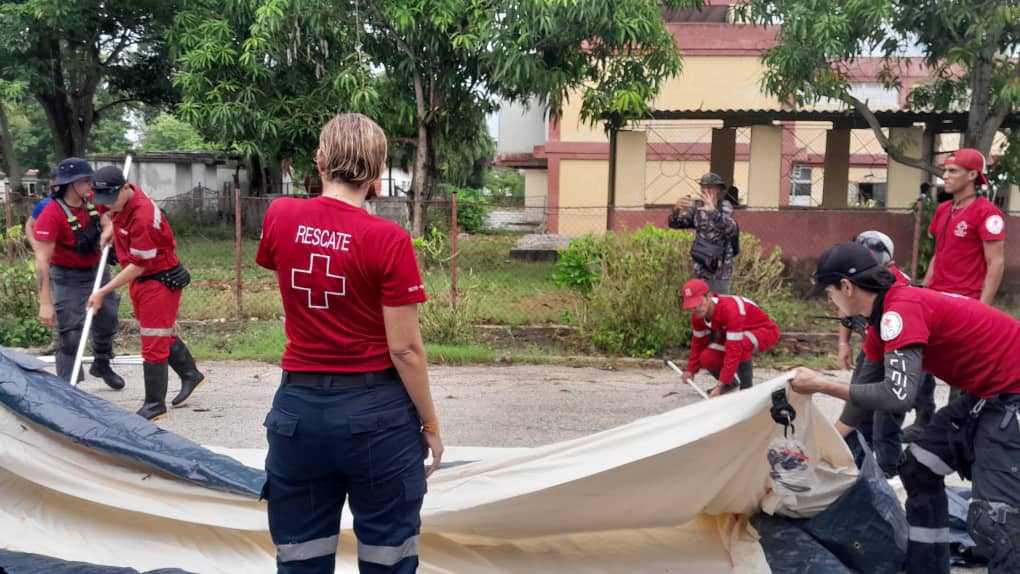 La lluvia no fue impedimento para estos hombres y mujeres cuyo objetivo es claro: desplegar el primer hospital móvil en Cuba. Desde la India, llegó el centro de campaña hasta el municipio Río Cauto, territorio más vulnerable por las inundaciones en Granma.