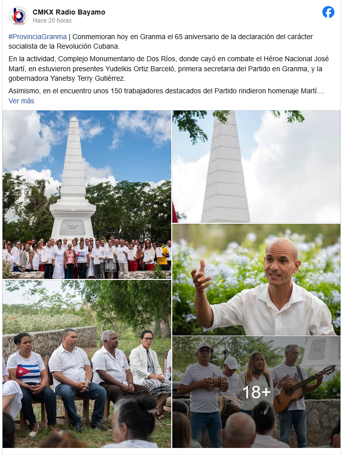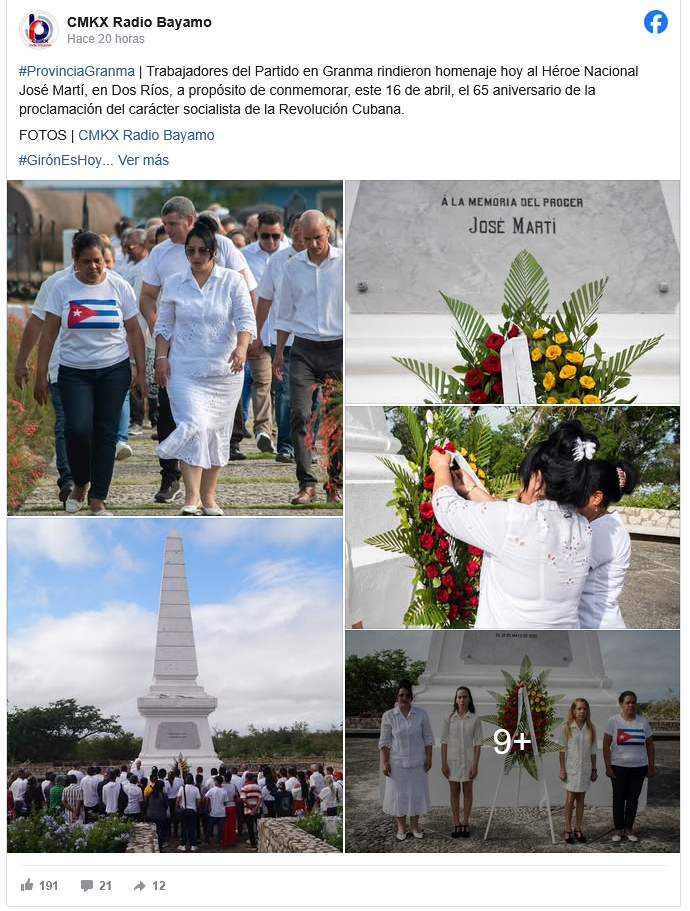 La ceremonia se realizó junto al obelisco erigido en Dos Ríos, municipio de Jiguaní, donde cayó en combate el Héroe Nacional de Cuba, José Martí, el 19 de mayo de 1895.