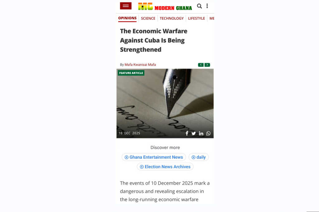 Las sanciones y el bloqueo son instrumentos de castigo colectivo y tienen consecuencias directas y dolorosas para la vida cotidiana del pueblo, no por desastres naturales ni mala gestión, sino por la agresión externa deliberada, enfatizó Mafa en un artículo en Modern Ghana y medios de la región.