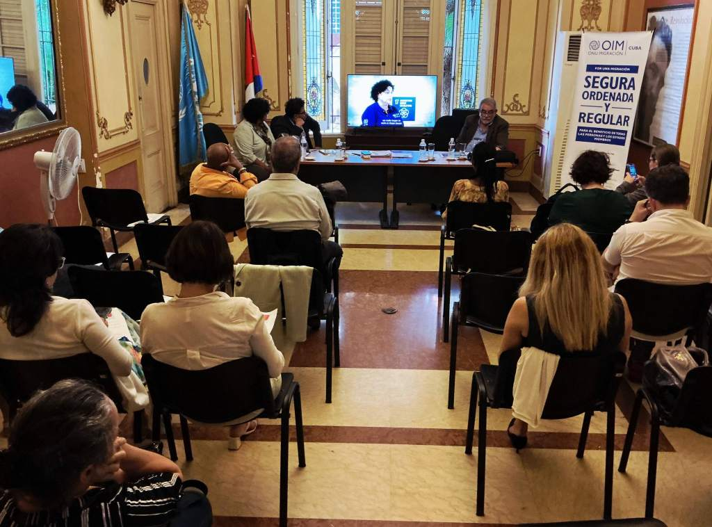 La presidenta de la ACNU (Asociación Cubana de Naciones Unidas), Norma Goicochea, en una intervención especial, resaltó la necesidad de abordar la migración con un enfoque que priorice el respeto a la integridad y bienestar de los seres humanos,