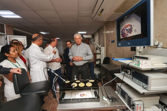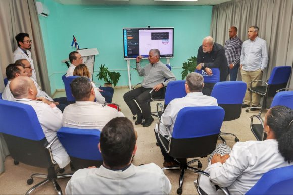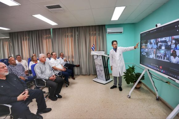 En el Ameijeiras, Díaz-Canel asistió a la apertura de la primera fase del hospital digital virtual, concebido para gestionar todos los flujos médicos, su interacción y como espacio para la formación del recurso humano.