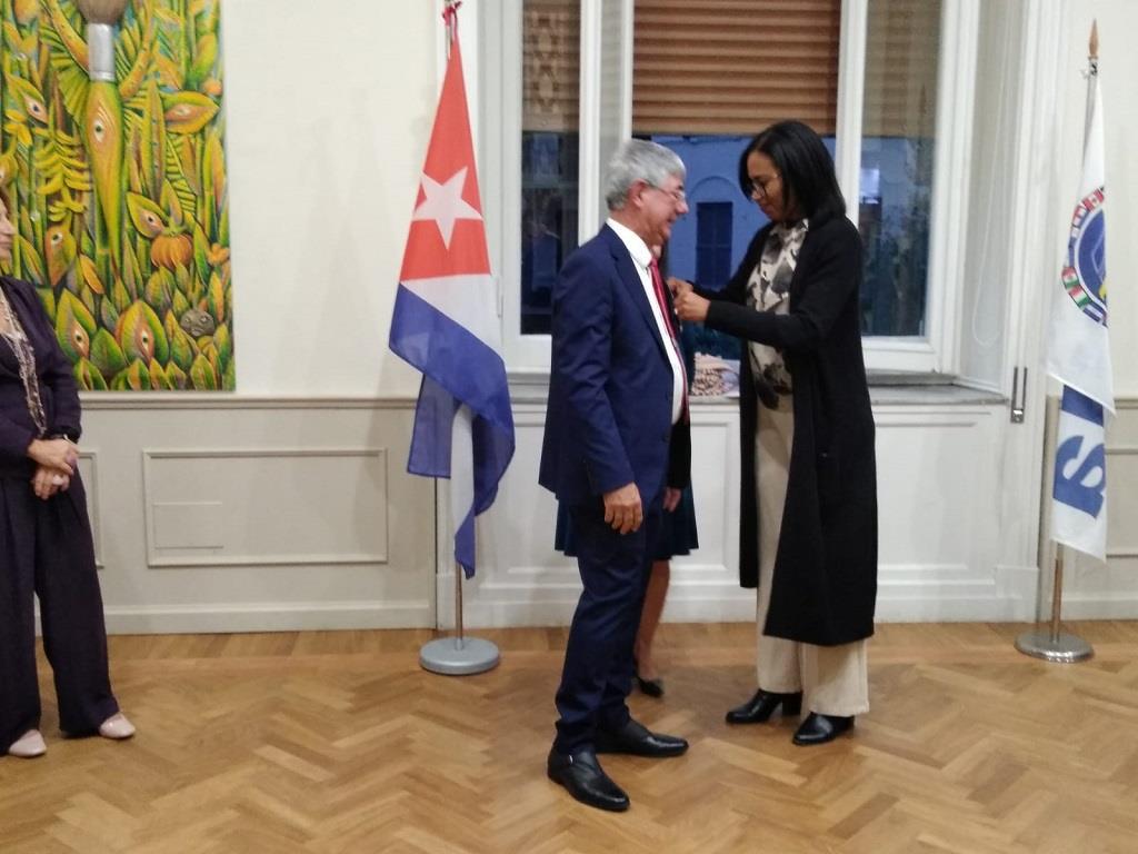 Durante la inauguración en Roma de la nueva muestra Madre Natura, la presidenta del ICM, en nombre del Ministerio de Cultura de Cuba, impuso el lunes último a este artista la Distinción por la Cultura Nacional, por su meritoria labor.