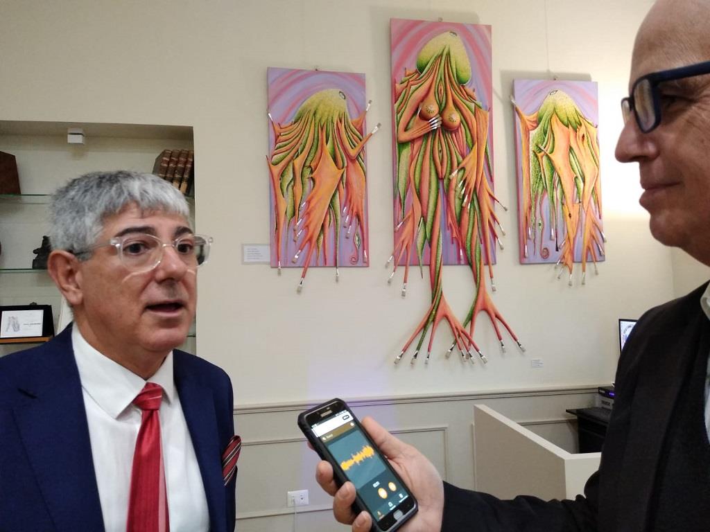 Destacó la relevancia de poder mostrar en este espacio de la capital italiana, en ocasión de esta jornada, una exposición de pinturas y esculturas de Raúl Hernández, quien tiende con su aporte artístico un puente entre ambas naciones, con obras presentes en 25 exposiciones personales, 47 colectivas, y en colecciones privadas.