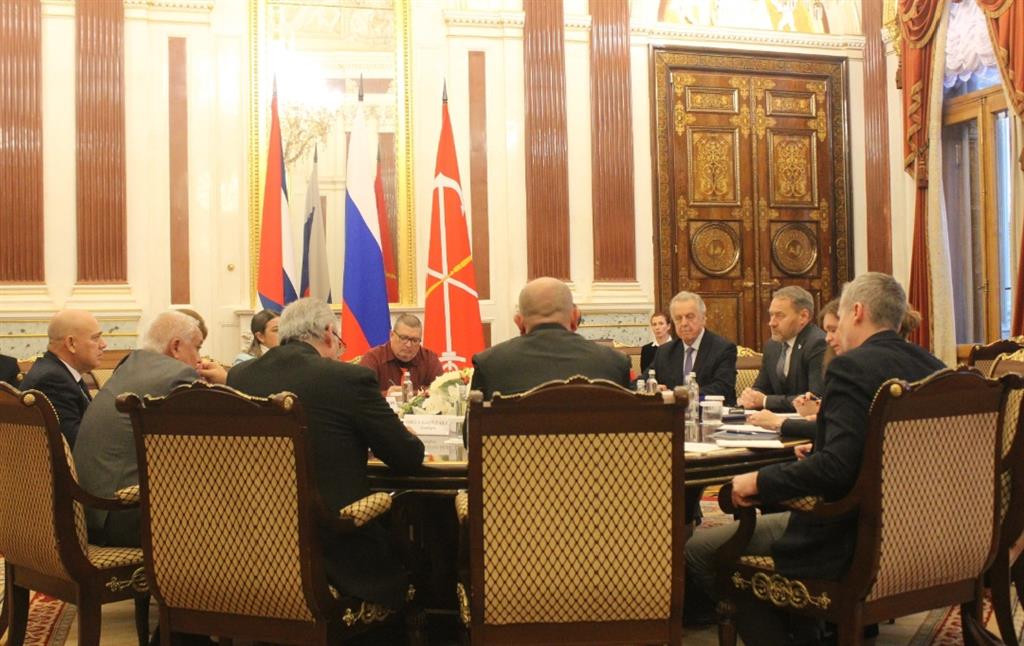 Previo a este encuentro el secretario de Organización del CC-PCC y la delegación que lo acompaña llegaron hasta la sede de la Asamblea Legislativa donde fueron recibidos por el presidente de este órgano legislativo en San Petersburgo, Alexander Belsky.